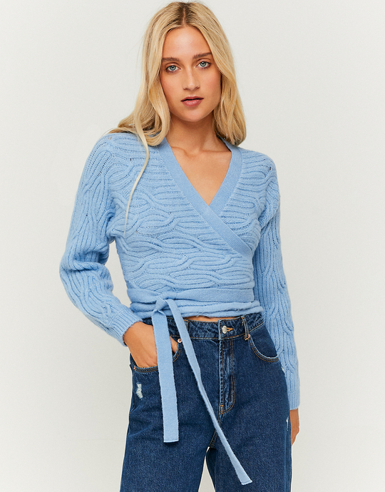 Blauer Kabelstrick Cardigan