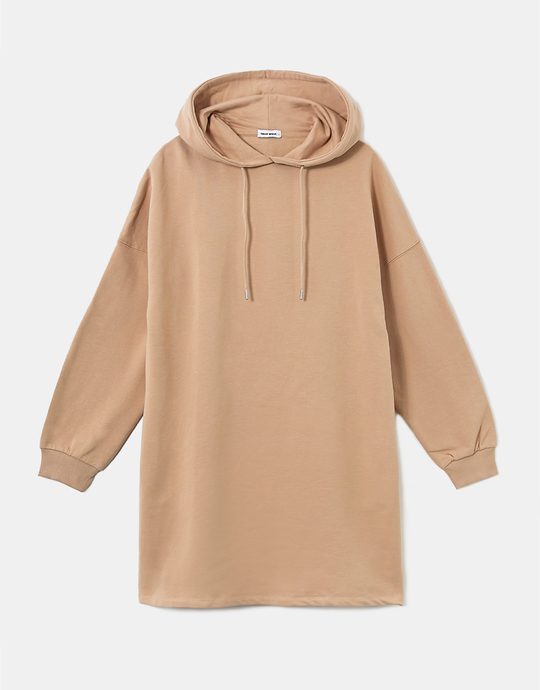 Beiges Sweatkleid mit Kapuze