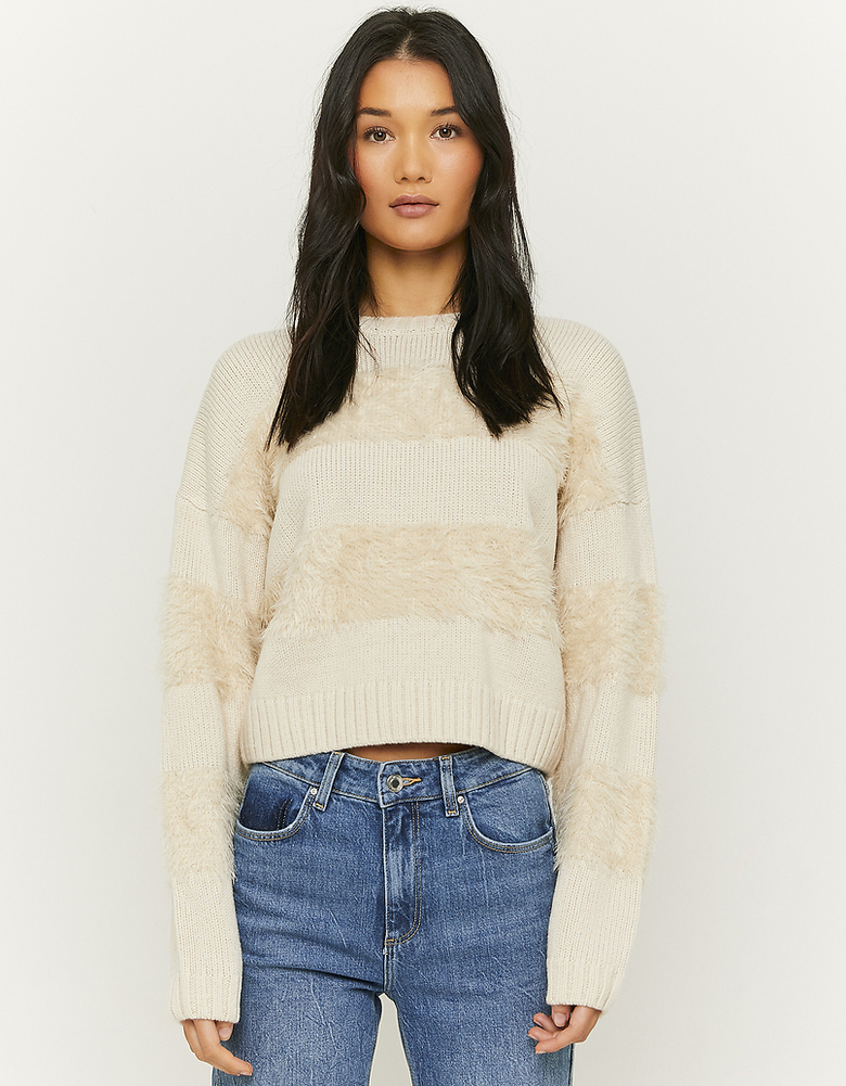 Beiger Flauschiger Pullover in Beige