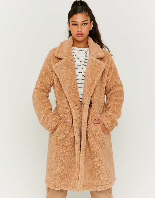 Tauche mit Stil und Verführung in den Winter ein mit unserem braunen Teddyfellmantel für Frauen! 🧥✨ Hergestellt aus luxuriösem Kunstfell, strahlt dieser lang geschnittene Mantel in verführerischem Braun eine bezaubernde Eleganz aus. Bleib unverschämt gemütlich und setze in dieser Saison ein unwiderstehlich schickes Statement.
