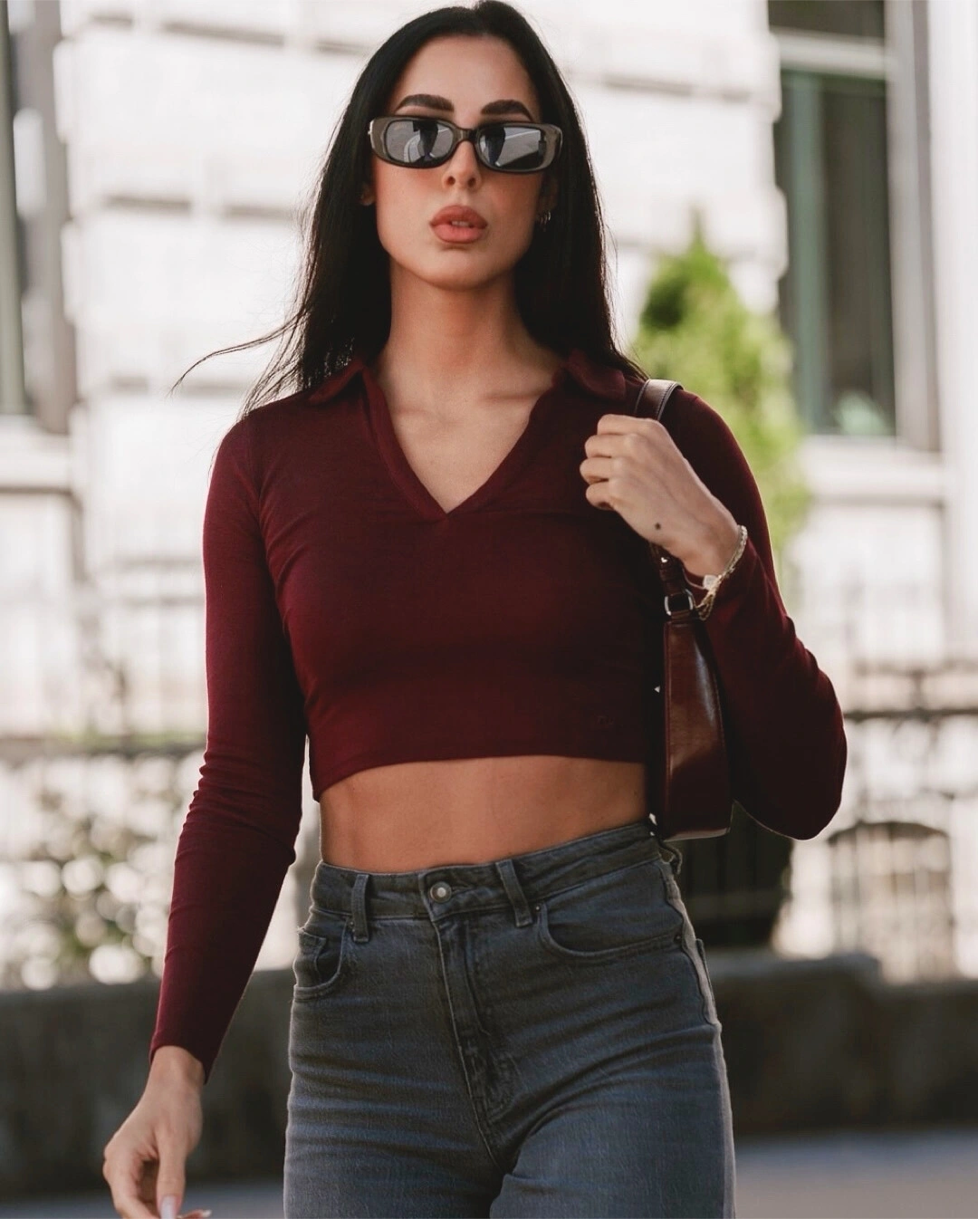 Basic Burgunder Langarm-T-Shirt | TALLY WEiJL