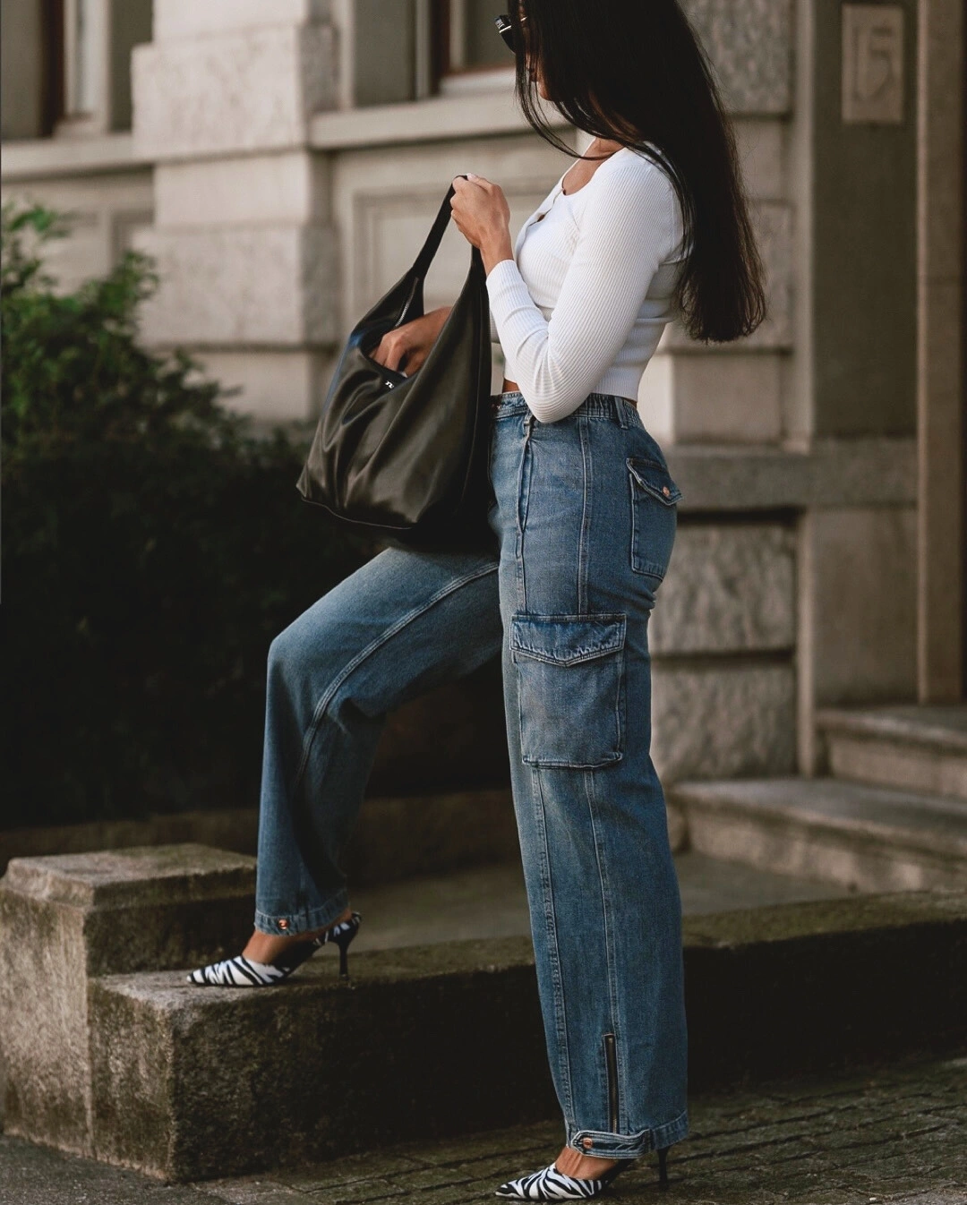 Cargo-Jeans mit mittlerer Taille