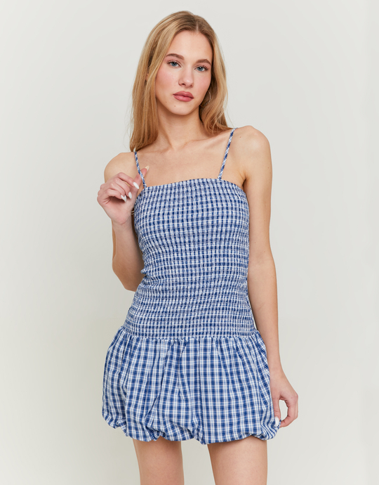 Blau‑ und weisser Kleid mit Vichy‑Print