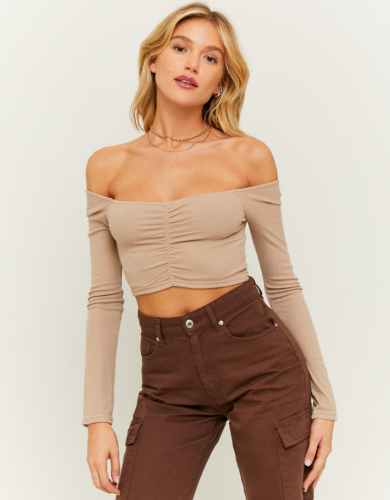 Beiges einfarbiges kurzes Top