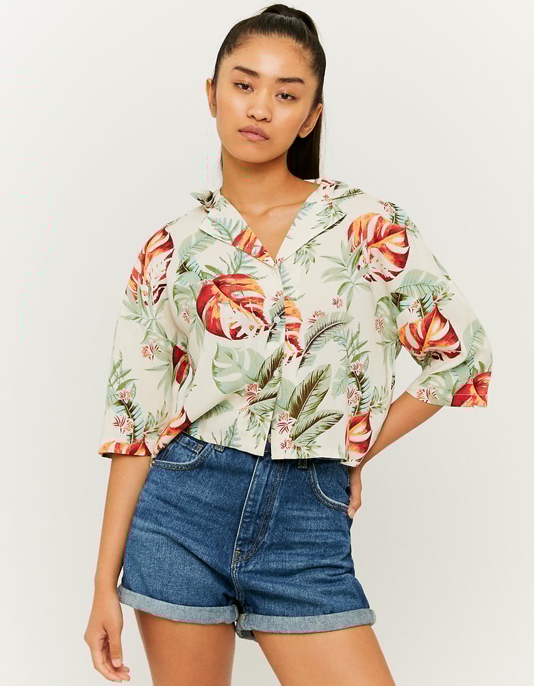 Geblümtes Lockeres Hemd mit V‑Ausschnitt