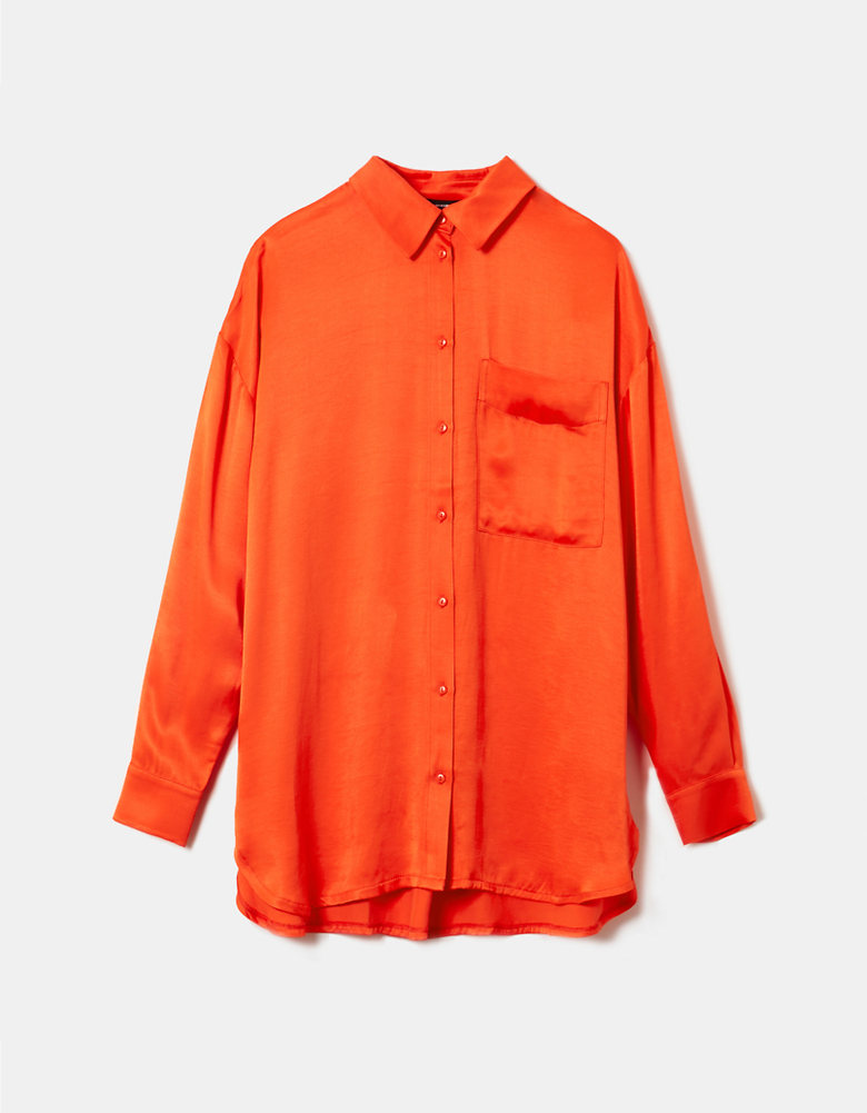 Orangefarbenes Langärmeliges Satin Hemd
