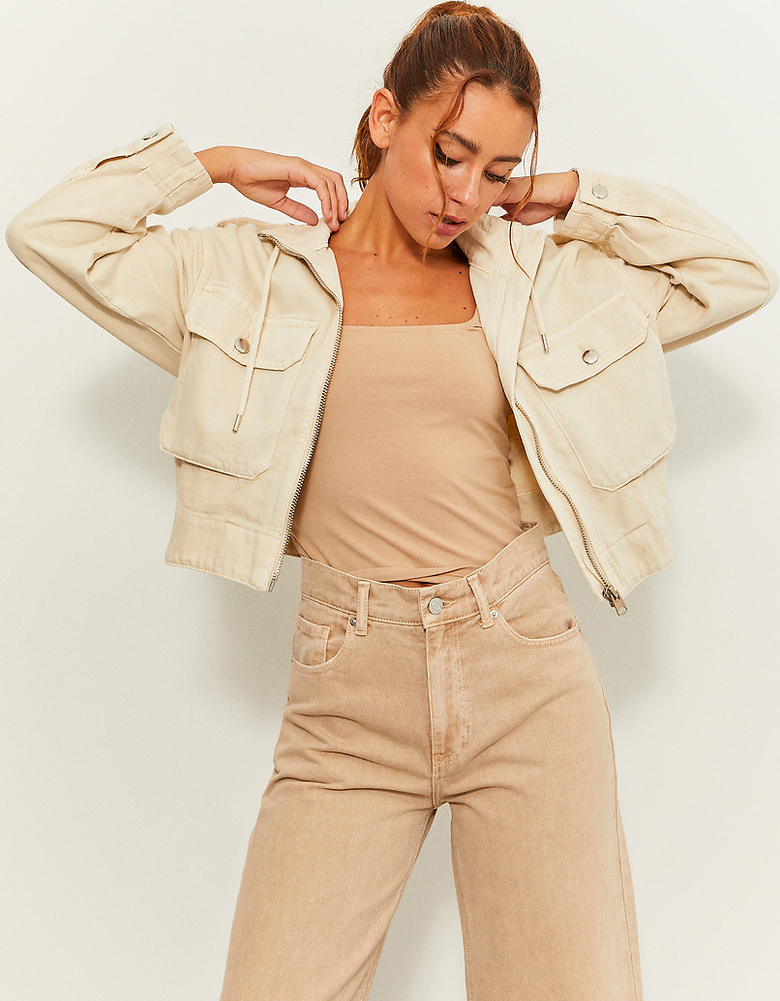 Beige Denim Casual Jacke
