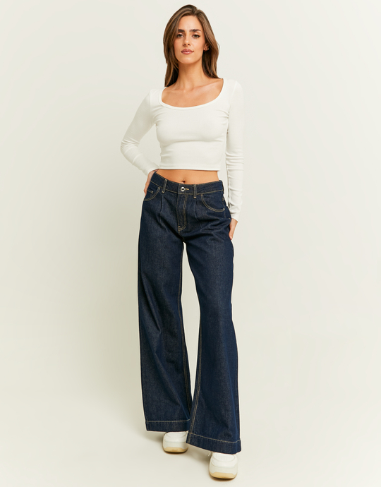 Dunkelblau Wide Leg Jeans mit Falten‑Details