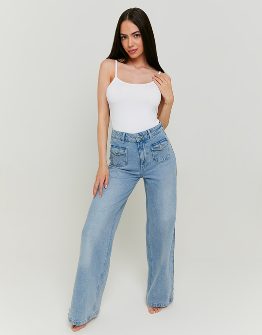 Blaue Wide Leg Jeans mit Taschen