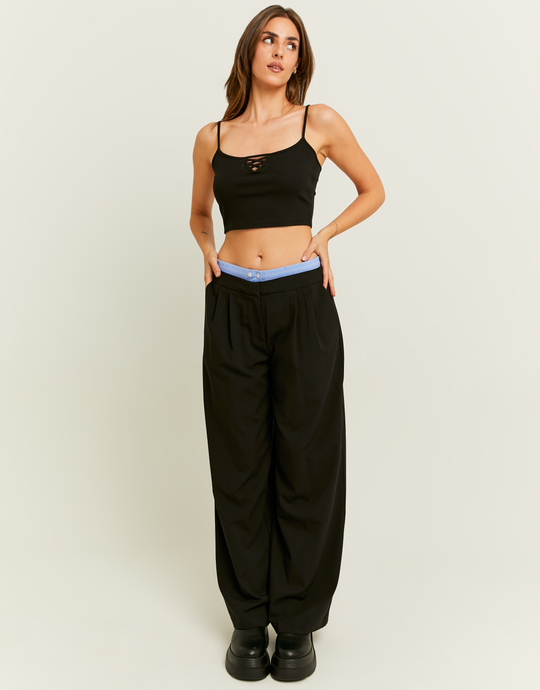Hose mit doppeltem Bund und weitem Bein in Schwarz