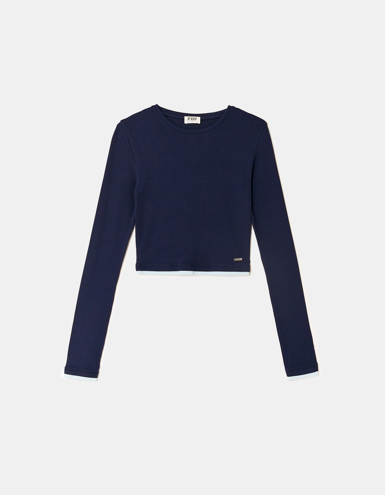 Blaues Basic Langarm‑T‑Shirt