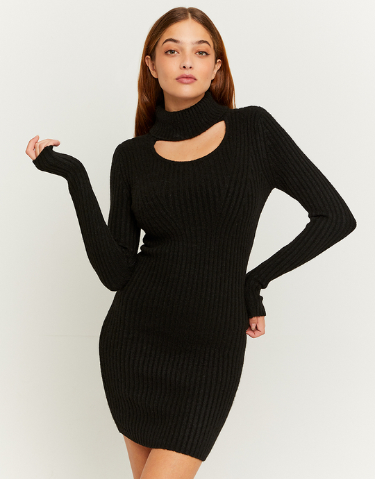 Schwarzes Strick‑Minikleid mit Cut‑Out‑Ausschnitt
