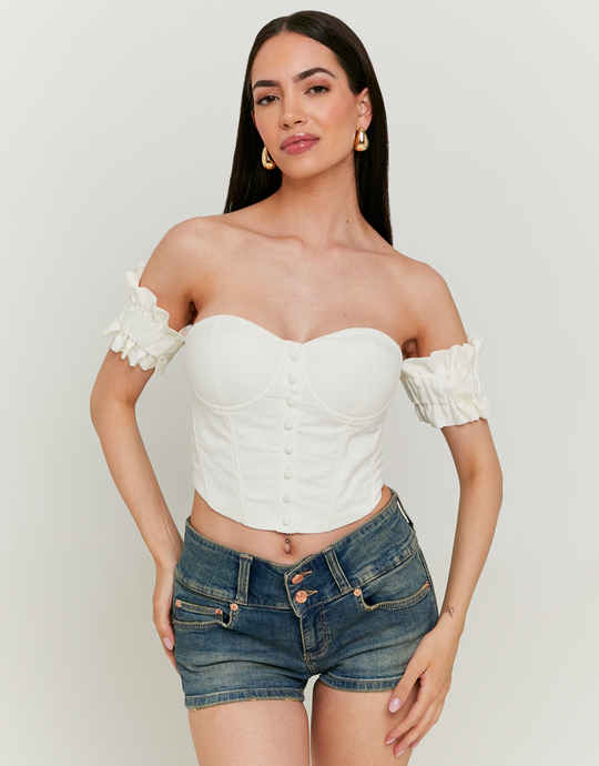 Weißes schulterfreies Korsett‑Top