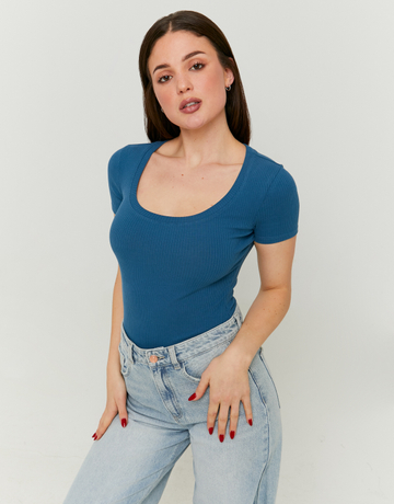 Blaue T-Shirt mit Quadratischem Ausschnitt