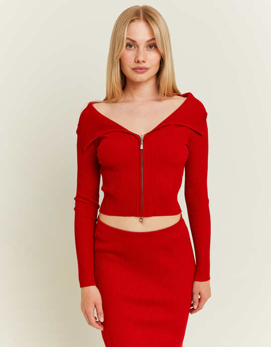 Roter schulterfreier Cardigan mit Reißverschluss