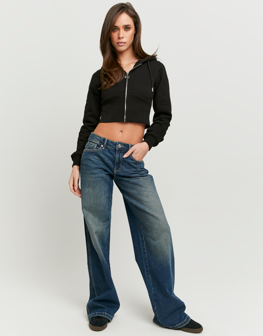 Unsere blauen Low Waist Straight Leg Jeans sind die perfekte Wahl für alle, die einen klassischen Look mit modernem Twist suchen! Der elastische Denim-Stoff sorgt für eine bequeme Passform und Flexibilität, während der niedrige Bund die Taille betont und deinem Outfit eine coole, trendige Note verleiht. Der gerade Schnitt der Beine schafft eine zeitlose Silhouette, die sich mühelos zu allem kombinieren lässt – ob mit einem lockeren T-Shirt und Sneakers für den Alltag oder mit einer schicken Bluse und High Heels für einen eleganteren Look. Diese Jeans bieten dir nicht nur maximalen Komfort, sondern auch vielseitige Styling-Möglichkeiten für jede Gelegenheit. Ein absolutes Must-have für deinen Kleiderschrank, das immer wieder neue Stylingmöglichkeiten bietet! TALLY WEIJL ist ein stolzes Mitglied von Better Cotton. Indem Du unsere Baumwollprodukte wählst, unterstützt du die Mission von Better Cotton. Better Cotton wird über ein Chain-of-Custody-Modell namens Massenbilanz bezogen. Das bedeutet, dass Better Cotton nicht physisch bis zum Endprodukt zurückverfolgt werden kann. Die Better Cotton-Farmer profitieren jedoch von der Nachfrage nach Better Cotton in einer Menge, die derjenigen entspricht, die wir „beziehen“.