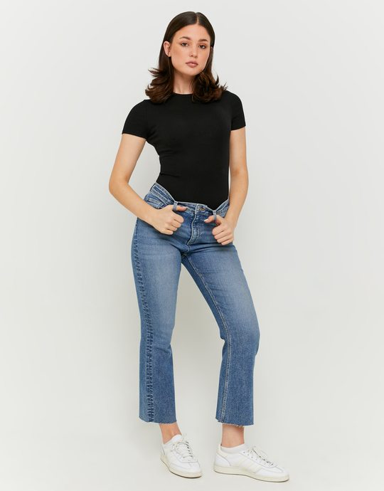 Unsere High Waist Cropped Flare Jeans in Blau sind der ideale Mix aus trendigem Design und unvergleichlichem Komfort! Der elastische Denim-Stoff sorgt für eine angenehme Passform, die sich perfekt an deine Körperform anpasst und dir gleichzeitig genügend Bewegungsfreiheit bietet. Der hohe Bund betont die Taille und zaubert eine wunderschöne Silhouette, die deine Figur perfekt in Szene setzt. Der Cropped Flare Schnitt mit ausgestellten Beinen endet knapp über dem Knöchel und sorgt so für einen lässigen, aber eleganten Look, der deine Schuhe besonders gut zur Geltung bringt. Diese Jeans lassen sich super vielseitig stylen – ob mit einem einfachen T-Shirt und Sneakers für einen entspannten Alltagslook oder mit einer eleganten Bluse und High Heels für einen schicken Abendauftritt. Ein echtes Must-have für deinen Kleiderschrank, das immer wieder neue Styling-Möglichkeiten bietet! TALLY WEIJL ist ein stolzes Mitglied von Better Cotton. Indem Du unsere Baumwollprodukte wählst, unterstützt du die Mission von Better Cotton. Better Cotton wird über ein Chain-of-Custody-Modell namens Massenbilanz bezogen. Das bedeutet, dass Better Cotton nicht physisch bis zum Endprodukt zurückverfolgt werden kann. Die Better Cotton-Farmer profitieren jedoch von der Nachfrage nach Better Cotton in einer Menge, die derjenigen entspricht, die wir „beziehen“.