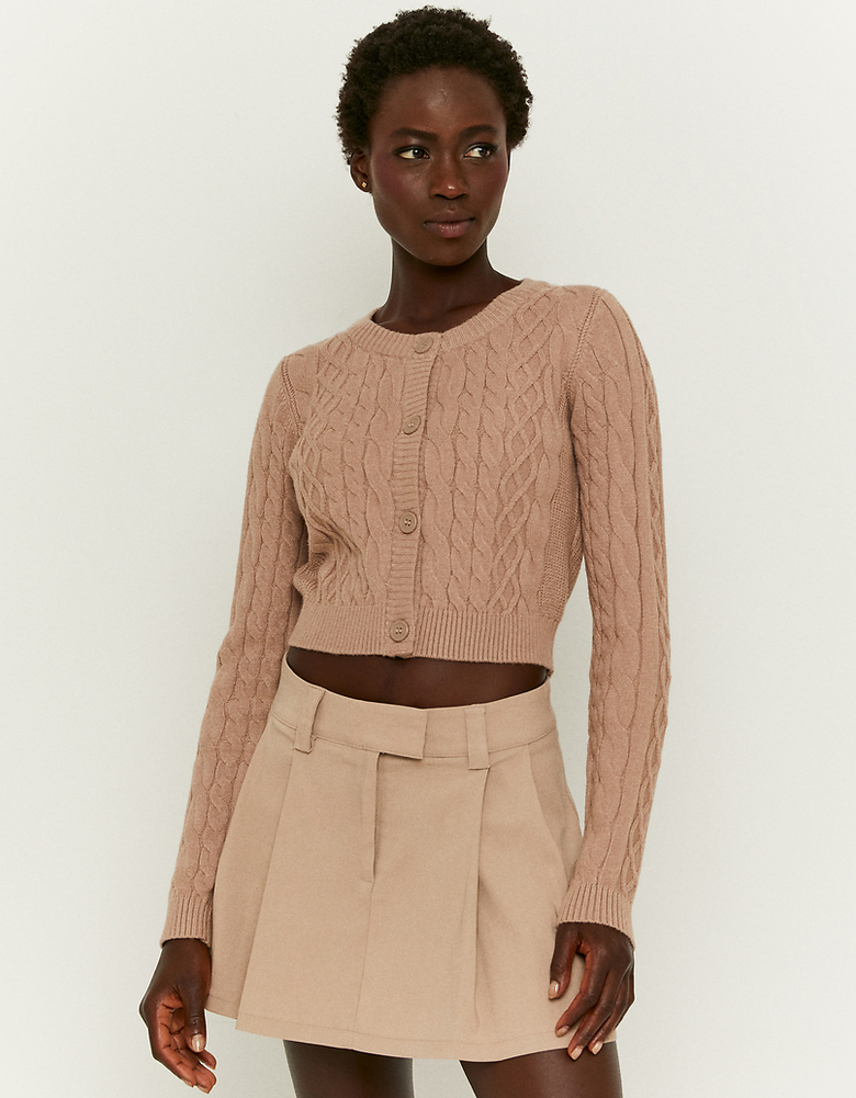 Beige Buttoned Cable knit Cardigan
