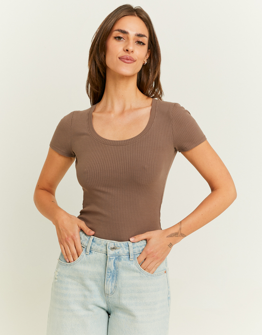 Enhance your casual wardrobe with our Brown Square Neck T-Shirt. This trendy cropped T-shirt features a flattering square neckline and a fitted silhouette, perfect for showcasing your style. The rich brown color adds a warm, earthy touch, while the high-quality fabric ensures comfort and durability. With its short sleeves and versatile design, this T-shirt is ideal for casual outings or layering under jackets and cardigans. Elevate your everyday look with this chic and stylish piece. Tally Weijl is a proud member of Better Cotton. By choosing our cotton products, you´re supporting our investment in Better Cotton´s mission. This product was sourced via a system of mass balance and therefore may not contain Better Cotton.