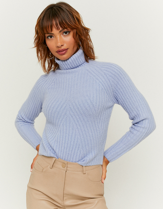 Blue Knit Basic Turtle Neck Jumper