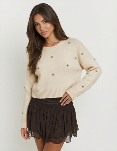 White Knitted Jumper with Rhinestones