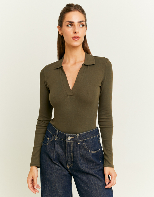 Elevate your everyday style with the Khaki Polo Neck Bodysuit! 🌿 This must-have piece brings together a chic polo neck with a casual, fitted design for a look that's both comfortable and on-trend. The khaki color adds a fresh, earthy vibe that pairs perfectly with jeans, skirts, or shorts. 👖👗 Long sleeves make it a go-to for those cooler days, while the bodysuit fit ensures everything stays neatly in place. Whether you're dressing up for a casual day out or just want to add a touch of sophistication to your look, this bodysuit is your new best friend. Easy to style, easy to wear, and effortlessly cool! 😎✨ Tally Weijl is a proud member of Better Cotton. By choosing our cotton products, you´re supporting our investment in Better Cotton´s mission. This product was sourced via a system of mass balance and therefore may not contain Better Cotton.