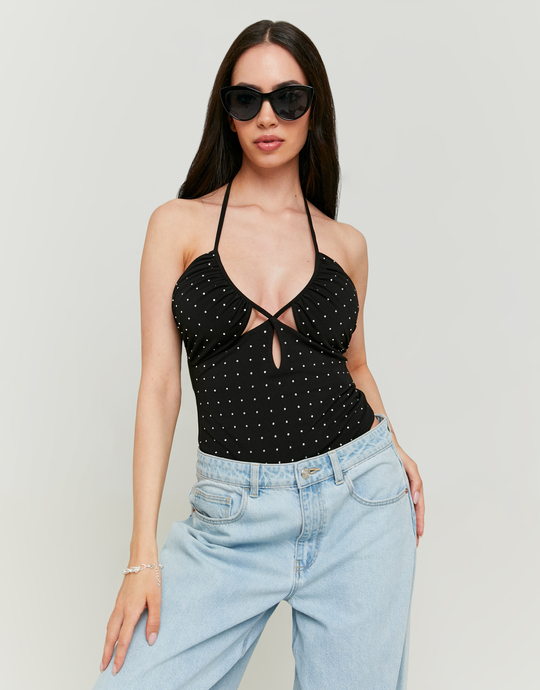 Black Fancy Bodysuit with Strass