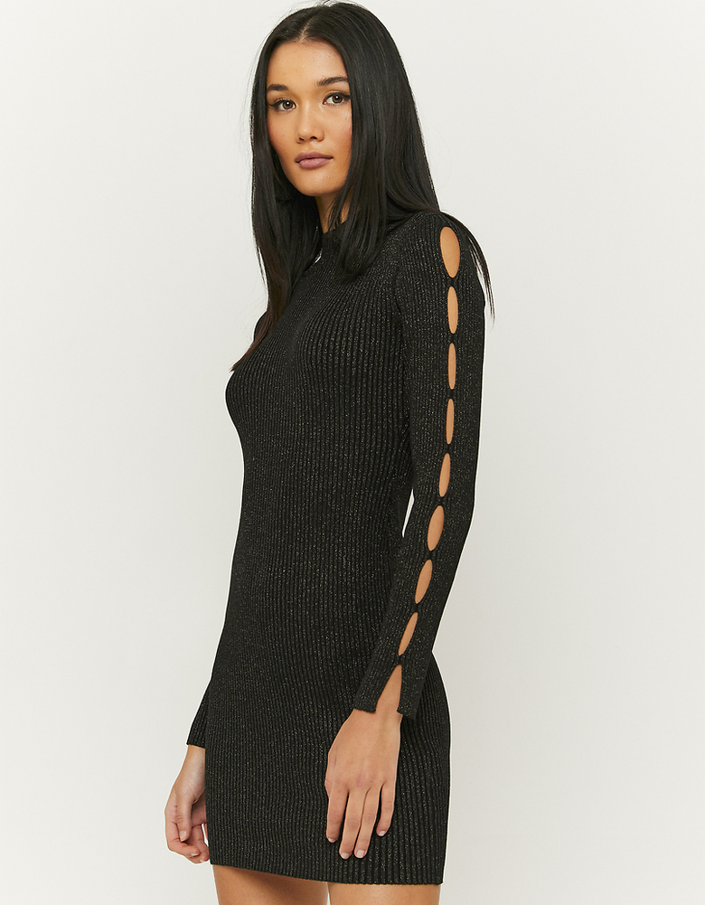 Black Cut Out Lurex Mini Jumper Dress