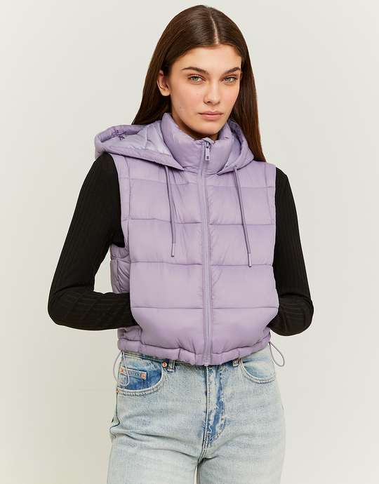 Purple Cropped Padded Vest with Hood