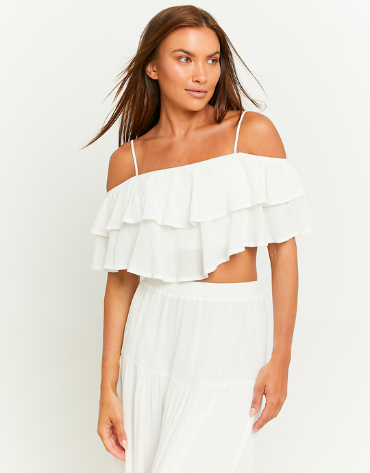 White Crop Top with Ruffles
