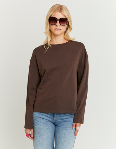 Basic Brown T-Shirt With Long Sleeves