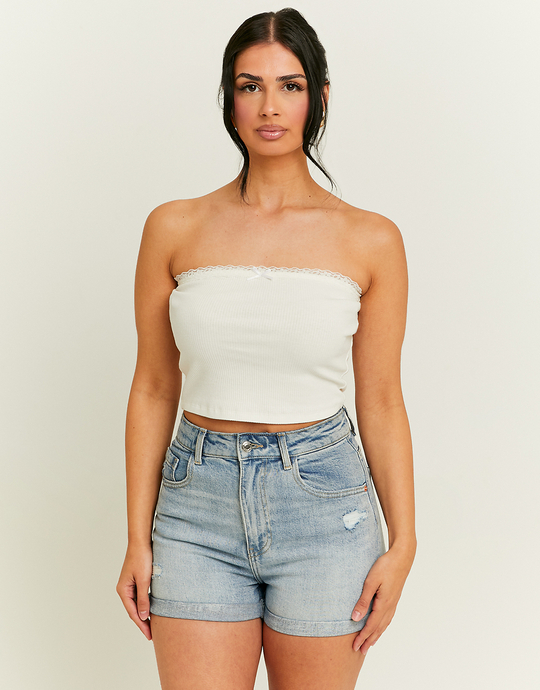 Lace Trim White Bandeau Top