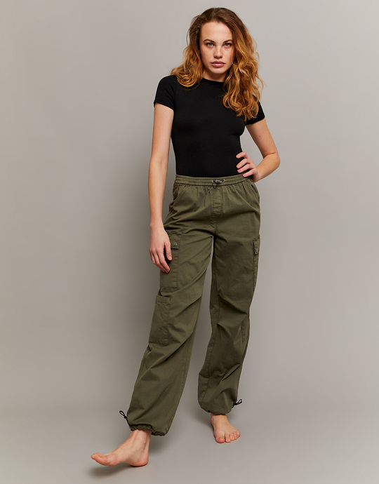 Experience a perfect blend of comfort and style with our Khaki High Waist Parachute Trousers. The high waist and parachute design give a contemporary twist to a classic piece. These trousers are ideal for a laid-back yet fashion-forward look. Elevate your wardrobe with this versatile and on-trend essential.