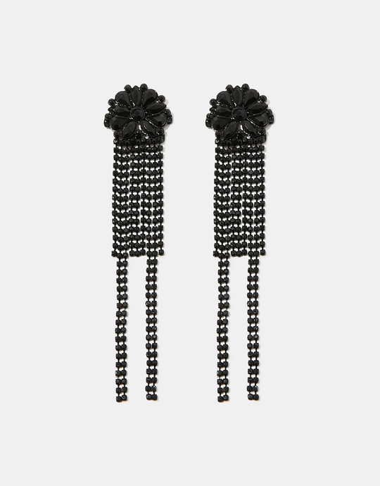 Black Long Earrings with Rhinstones