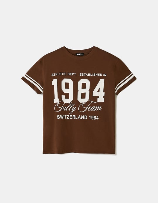 This brown printed T-shirt is made from soft cotton for everyday comfort. Designed with short sleeves, a regular length and a classic round neckline, it features a printed pattern that adds a modern touch. Easy to wear with jeans or casual trousers.