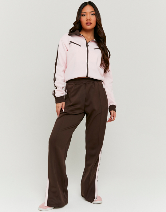 Sporty meets chic in these brown printed joggers with pink side stripes. Designed for comfort and style, they feature a relaxed fit and soft fabric that’s perfect for everyday wear. Pair them with a crop top or hoodie for an effortless street look that keeps you comfy all day.