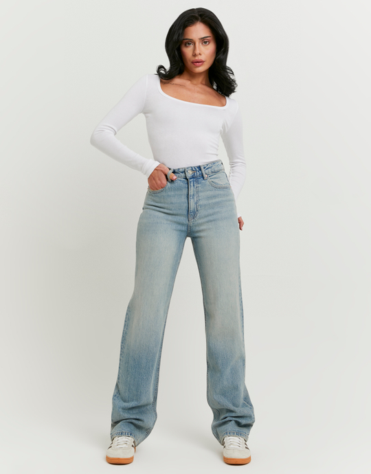 The High Waist Straight Leg Jeans are a must-have for a classic and versatile wardrobe. Made from durable blue denim, these jeans feature a flattering high-waist design that highlights your silhouette while ensuring all-day comfort. 👖 The straight-leg fit creates a timeless look that pairs effortlessly with casual tees or dressy tops. Perfect for any occasion, these jeans are your go-to for a stylish yet relaxed outfit! I’m beautiful outside and inside. This product contains at least 30% TENCEL™ Lyocell fibers, derived from the natural raw material wood. Together we can make a difference. TENCEL™ is a trademark of Lenzing AG.