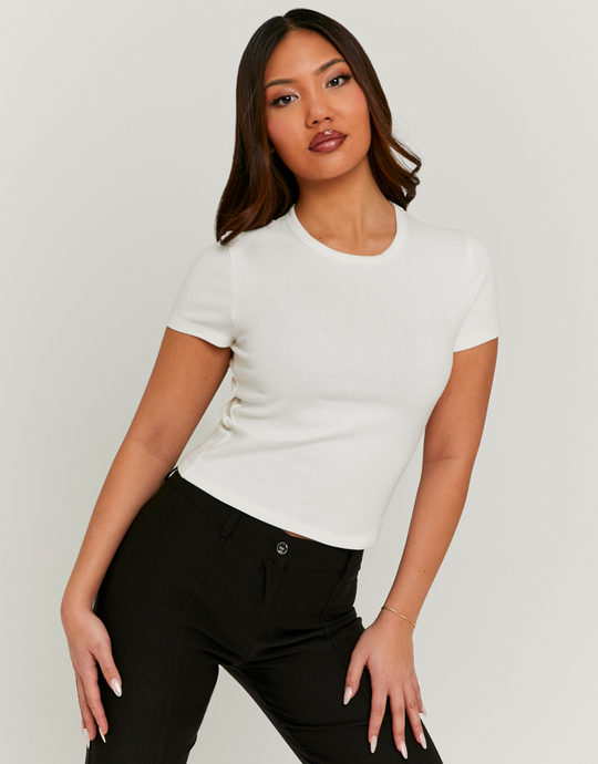 White Ribbed Basic T‑shirt