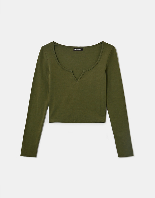 Green Basic Long Sleeves T shirts