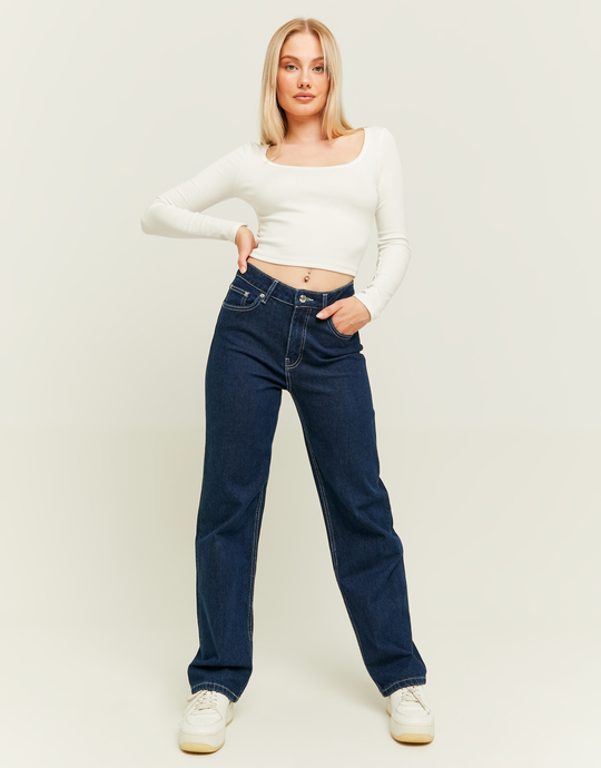 Upgrade your denim game with our Women's High Waist Blue Straight Leg Jeans. Crafted for comfort and style, these jeans boast a flattering high-rise fit and a classic straight-leg design. Versatile and chic, these Women Jeans are the perfect addition to your everyday wardrobe. I´m beautiful outside and inside. My fibers were made with at least 30% TENCEL™ Lyocell fibers, using wood pulp from sustainably managed forests. Together we can make a difference. TENCEL™ is a trademark of Lenzing AG.