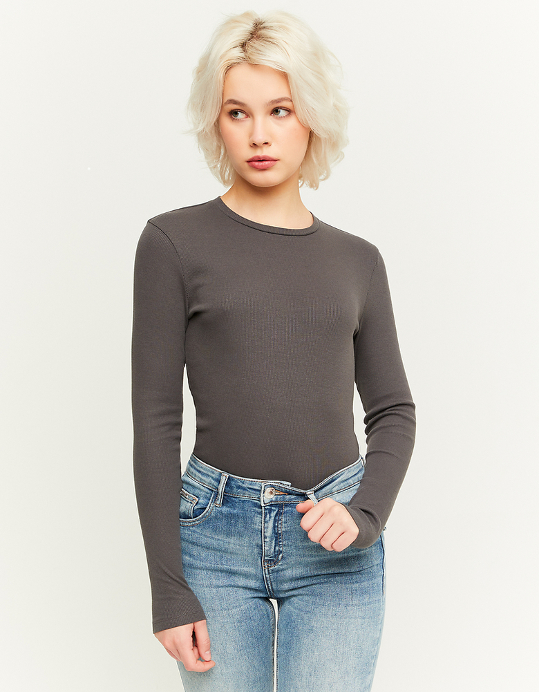 T‑Shirt Gris Basique à Manches Longues