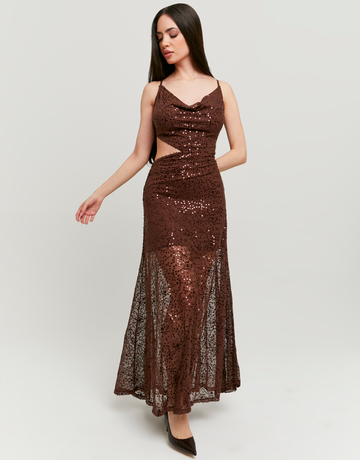Top Asymétrique en Satin Marron à Pois avec Finitions en Dentelle