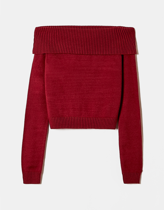 Pull Rouge Ajusté avec Encolure Épaules Dénudées