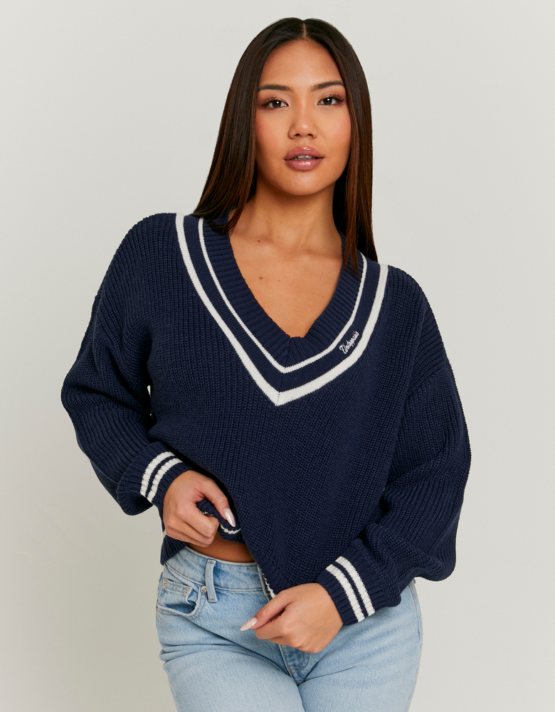 Ce pull en maille bleu rayé à col V est un essentiel cosy au style moderne. Les rayures apportent une touche classique, tandis que le col V donne une allure féminine. La maille douce assure un confort agréable au quotidien. Facile à associer avec un jean, une jupe ou un pantalon. Un pull polyvalent pour des looks décontractés et tendance.