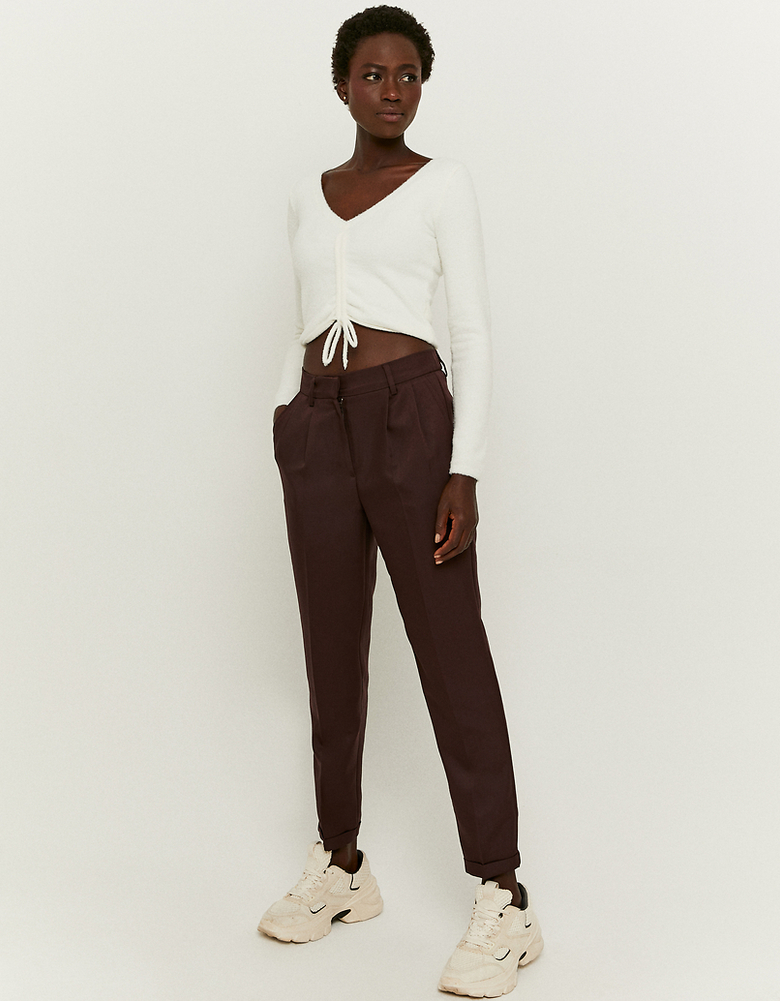 Pantalon Droit Taille Haute Brun