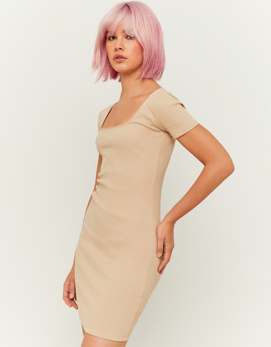 Robe Courte Manche Courte Beige