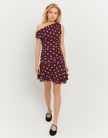 Robe Mini à Pois Bordeaux avec Volants