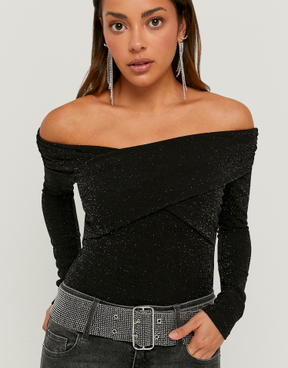 Black Lurex Off Shoulders Top