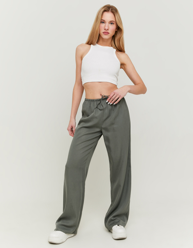 Khaki Wide Leg Trousers with Elastic Coulisse
