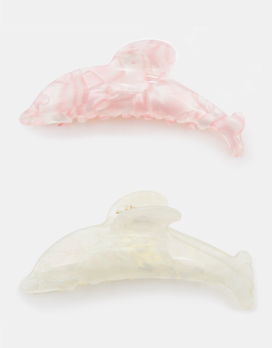 Bring some cute ocean vibes to your hairstyle with this adorable 2-pack of dolphin-shaped hair clips. The soft white and pink colors instantly add a fresh and sweet touch to your look. Perfect for everyday styling, they hold well without tugging or breaking your strands. The dolphin shape is super cute for kids and adults alike. Ideal for quick and fun hairdos, whether you're off to school, work, or a day out—these clips fit any style with a playful twist.